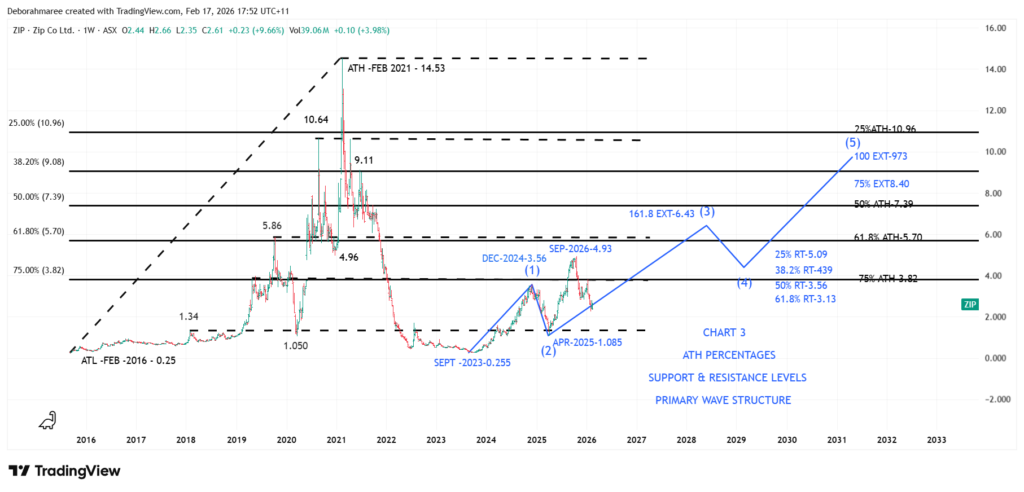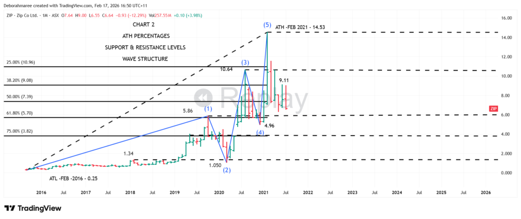 Chart 3 – Monthly ZIP Chart – Structure, Wave Behaviour & Confluence