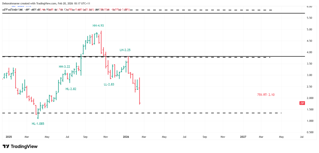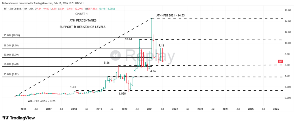 In Chart 1, we identified the structural spine of ZIP — the all-time high, the proportional retracement zones, and the broader recovery framework. That gave us context. Now we build on it.
